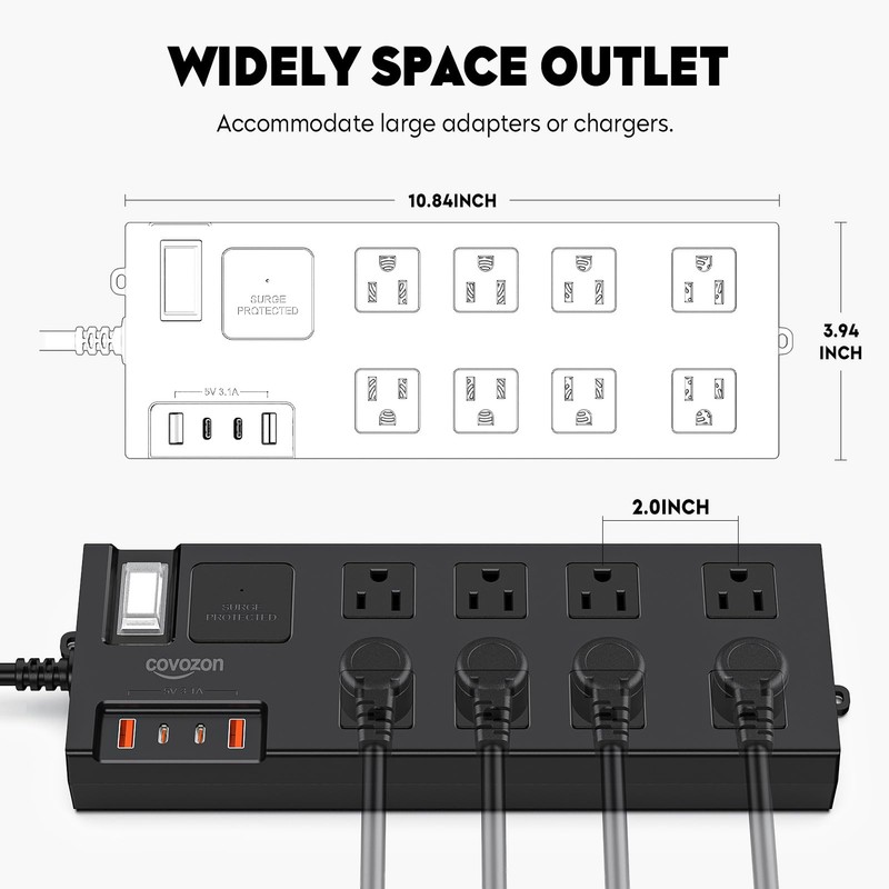 - Electric Shockproof Design For the new upgraded waterproof power strip, only a US standard plug can exclusively match the deliberately designed structure of the socket, which is patented by COVOZON, means Only the American standard plug inserted to turn on the circuit, other objects such as tweezers, forks, keys, and even children's fingers can't get powered through these Electric Shockproof outlets. Absolute security is guaranteed.