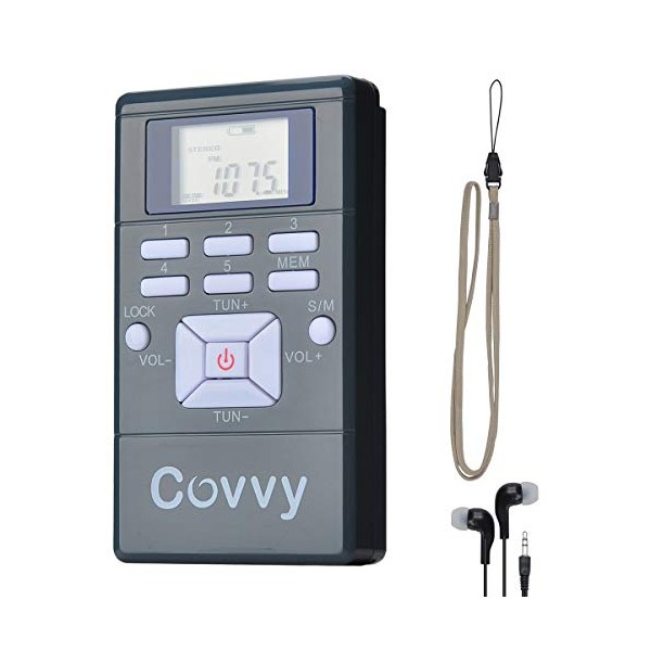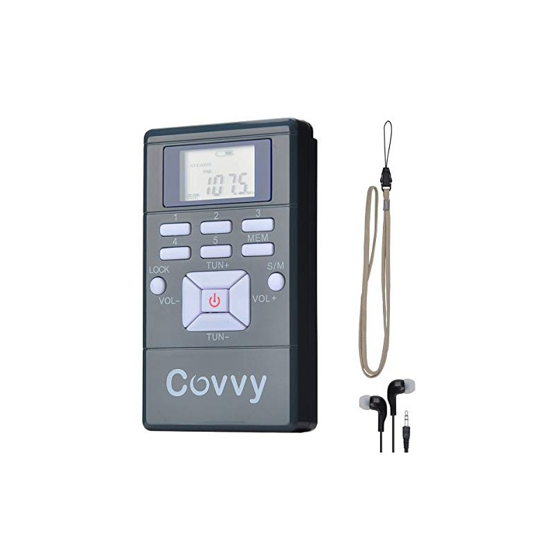 COVVY Portable FM Stereo Radio with Earphone, Mini Pocket Size Digital Tunning FM Transistor Radio for Walking, Running, Jogging (Gray)