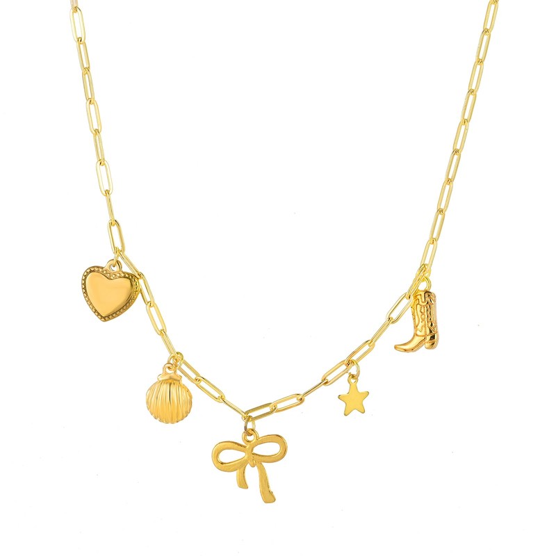 Cowboy Hat Boot Pendant Necklace for Women Layer Dainty Western Cowgirl Hat Boots Charms Chain Necklace Shell Necklaces Summer Seashell Beach 18k Starfish Surfer Jewelry Gift (Gold2)