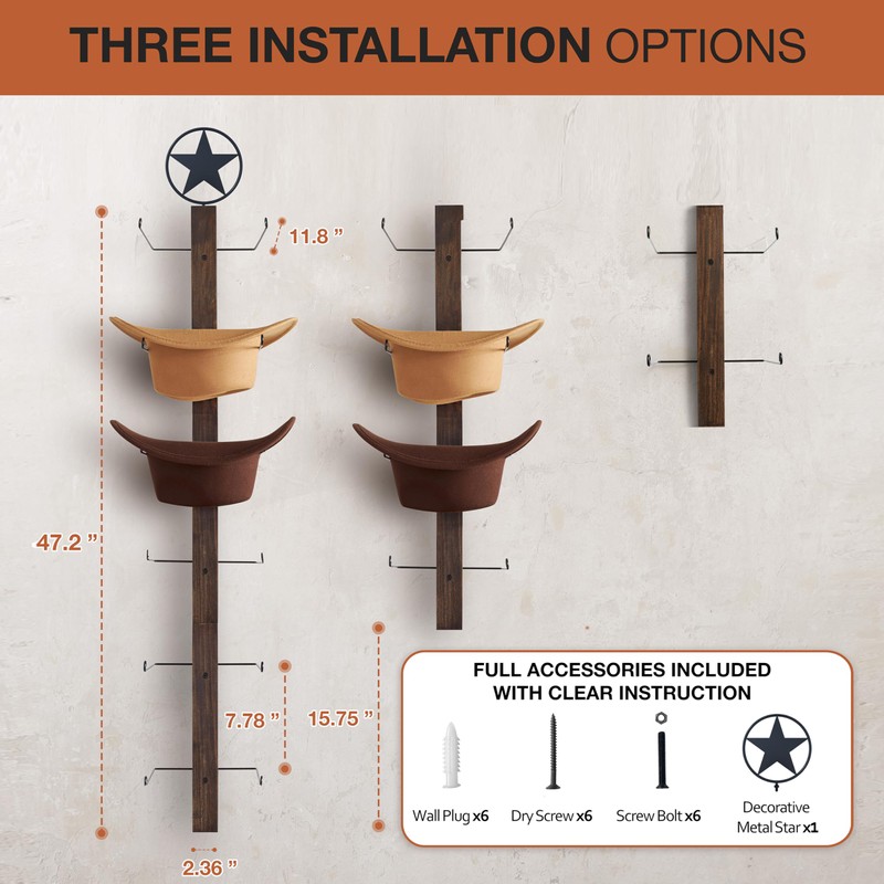 - EASY ASSEMBLY - Our hat rack for cowboy hats features three sturdy wood planks that you can easily connect with dowels included in the package. Assemble in a sequence for a beautiful-looking rustic wooden hat rack that compliments your farmhouse decor.