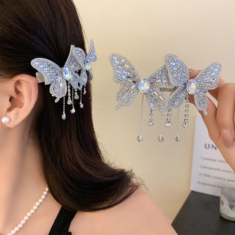 - HOCHWERTIGES MATERIAL: Hergestellt aus glitzernden Strasssteinen und langlebigem Metall, hartes Material, das nicht leicht kaputt geht. Die Schmetterlings-Haarspangen sind mit einer Schnalle versehen, die die Spange fest in Ihrem Haar hält, sodass sie sich nicht leicht löst oder verrutscht.