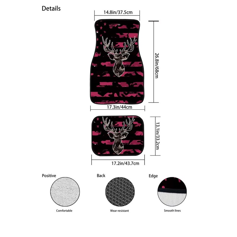 Cozeyat Pink Camo Deer Car Floor Mats Heavy Duty Rubber Car Mats 4-Piece Automotive Floor Mats Universal Car Mats All Weather for Most Sedan, SUV, Truck