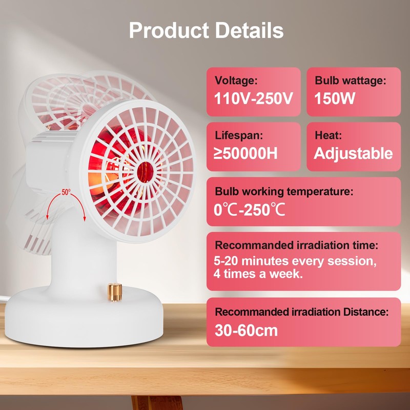 - Multifunctional: the infrared lamp not only ensures comfortable warm, but also makes you feel relaxed and have a good mood. If you have problems in muscles, joints, back, knees, shoulders, elbows and lumbar vertebrae. This red light warm lamp is your good choice. Use the infrared light lamp for 5-20 minutes to refresh your daily life. It is recommended to use it 4 times a week.
