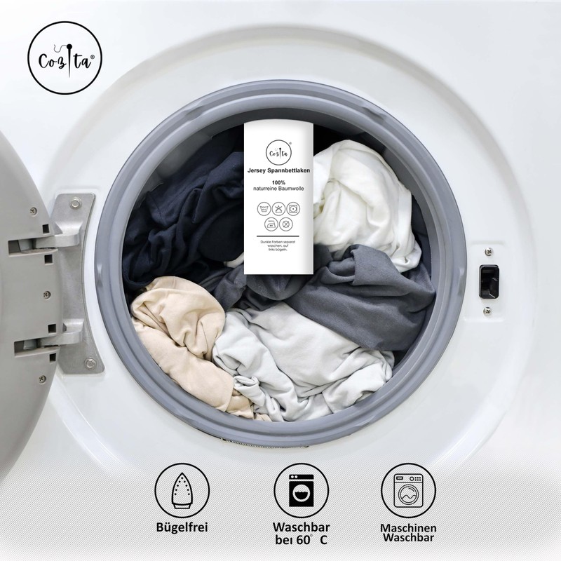 - Our made in green certified fitted sheet made of stretchy jersey cotton is absolutely easy to care for thanks to its excellent fabric density and shrinkage protection. The fabric meets the worldwide standard in terms of shrinkage, colour fastness after washing and a perfect fit for the mattress.