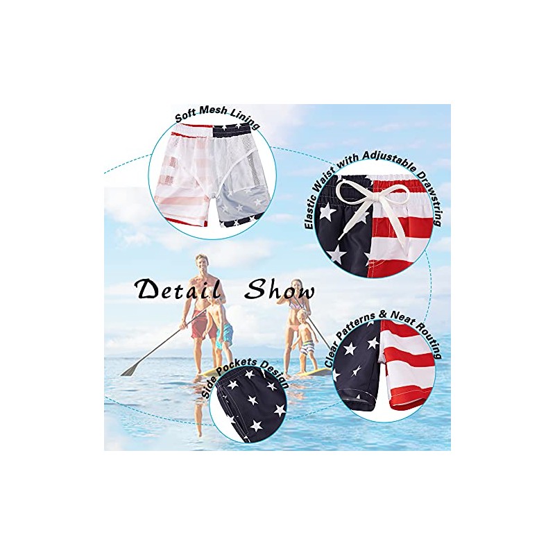 Cozople Boys Patriotic Swim Trunks Size 7 Funny America Flag Swim Shorts Quick Dry UPF50+ Beach Bathing Suit Swimwear Mesh Lining Independence Day Swim Boardshorts