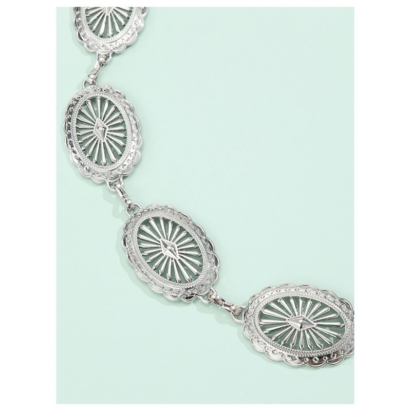 COZYEASE Women's Boho Oval Hollow Out Concho Belts Vintage Western Belly Chain Waist Belts Body Jewelry, Silver, 70/80