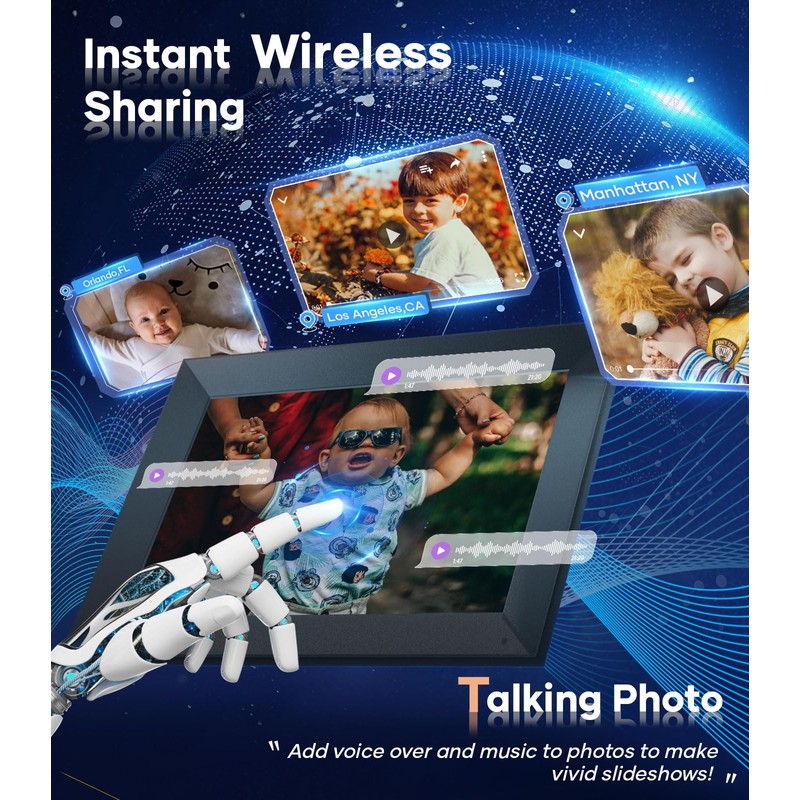 - Share Photos and Video Privately, Securely: Cozyla digital photo album connect you with your family in a delightful way. You can send photos or videos (up to 10 mins) to the frame from anywhere in the world. Loved ones can enjoy your wonderful moments within seconds on their frames. Plus, both you and your family get unlimited cloud storage. Cozyla wifi picture frame digital with app is the perfect present for your loved ones.