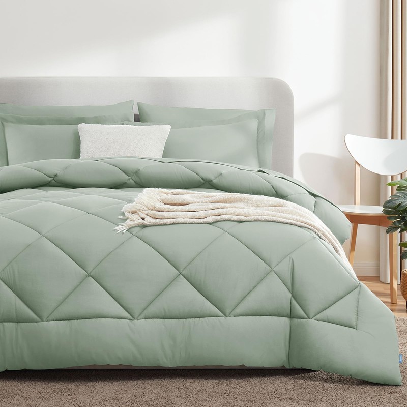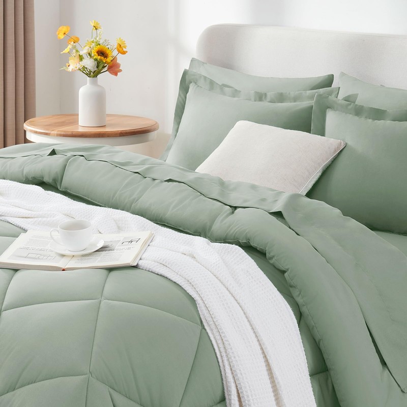 CozyLux King Comforter Set with Sheets 7 Pieces Bed in a Bag Sage Green All Season Bedding Sets with Comforter, Pillow Shams, Flat Sheet, Fitted Sheet and Pillowcases