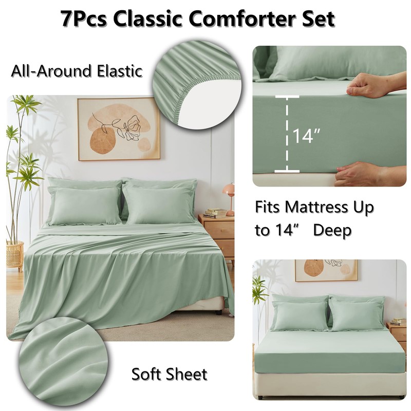 - Elaborate Design: The elastic deep pocket fitted sheet fits mattress max up to 14" deep. That can always keep non-slip no matter how you twist and turn in your bed. The comforter features durable box stitching which offers sophisticated look alongside simplicity and will also stable inside filling.