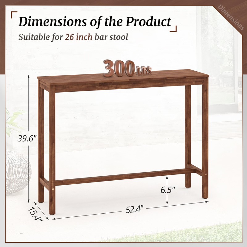 - 【Space-Smart Sizing for Any Layout】Choose from 4 versatile lengths (38/45/53/63)to fit compact apartments, kitchens, or commercial spaces. At just 15.4 wide and 39.6 standing height, rectangular bar tables maximizes floor space without sacrificing utility. Supports up to 300 lbs—ideal for meals, workstations, or party setups.