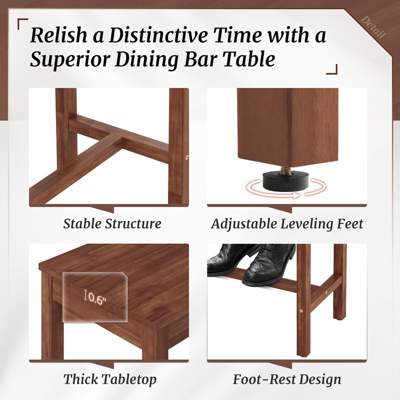 - 【Rock-Solid Stability Guaranteed】Our counter height table features a reinforced crossbar and four adjustable feet for unbeatable stability, even on uneven surfaces. Its solid construction ensures lasting durability, so you can confidently place snacks, drinks, and more without worry.