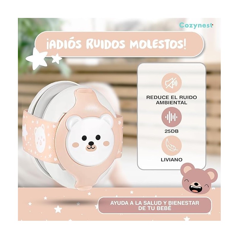 Schützen Sie die empfindlichen Ohren Ihres Babys mit unseren speziell für Kinder von 0 bis 36 Monaten. Mit einer effektiven Geräuschreduzierung von 25dB sind diese Gehörschützer die perfekte Lösung, um Ihr Kind in lauten Umgebungen wie Konzerten, Sportveranstaltungen, Flugreisen und mehr sicher und bequem zu halten. **Innovatives und attraktives Design** Unsere geräuschlosen Babyhelme verfügen über ein entzückendes Bären-Design, das die Verwendung für Kinder Spaß und attraktiv macht. Dieses Design ist nicht nur charmant, sondern auch hochfunktionell, um sicherzustellen, dass sich Ihr Baby beim Tragen des Gehörschutzes wohl und glücklich fühlt. Verstellbarer Komfort: Das verstellbare Kopfband ist so konzipiert, dass er sich perfekt an den Kopf Ihres Babys anpasst und den Druck gleichmäßig verteilt, um Beschwerden zu vermeiden. Dies sorgt für eine sichere und bequeme Passform, die sich dem Wachstum Ihres Kindes anpasst und einen kontinuierlichen und effektiven Schutz gewährleistet. **Portabilität und Bequemlichkeit** Jedes Paar geräuschhemmende Ohrenschützer wird mit einer praktischen Tragetasche geliefert, die die Aufbewahrung und den Transport erleichtert. Nehmen Sie die Gehörschützer einfach und sicher überall hin mit, um sicherzustellen, dass sie immer verfügbar sind, wenn Sie sie brauchen. **Sicherheit und Qualität garantiert** Hergestellt aus weichen und ungiftigen Materialien. Unsere geräuschhemmenden Babyhelme sind CE-, CPC- und RoHS-zertifiziert und erfüllen die höchsten Sicherheits- und Qualitätsstandards. Darüber hinaus sind sie leicht zu reinigen und sorgen dafür, dass sie jederzeit hygienisch und einsatzbereit bleiben. Vielseitig einsetzbar: Ideal für eine Vielzahl von Situationen, diese Gehörschützer sind perfekt, um Ihr Baby in jeder lauten Umgebung zu schützen, und bieten Eltern Ruhe und Komfort.