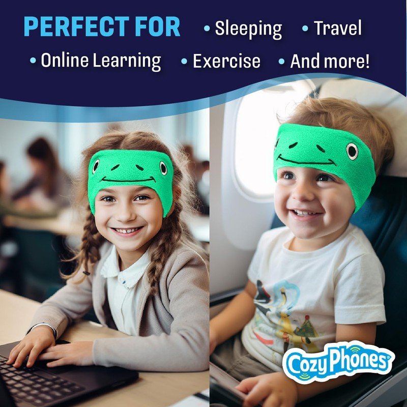 - KIDS EARPHONES FOR SCHOOL & TRAVEL: The comfy and stretchy headband stays in place and will not interfere with car seat headrest or airplane seats, allowing your child to sleep comfortably while traveling.