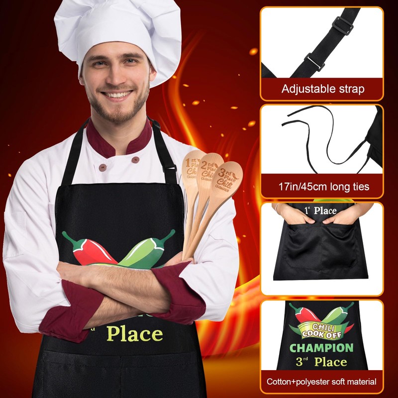 - Versatile Gift Option: the chili cook off prizes of spoons and aprons are ideal for individuals who love to cook or bake, have a penchant for competition, or simply enjoy interactive activities; These prizes are sure to bring happiness and excitement to its recipients, and can be regarded as souvenirs of the competition and kitchen supplies