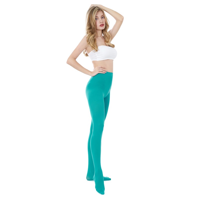 CozyWow Women's 80 Denier Solid Color Soft Opaque Footed Tights green sm