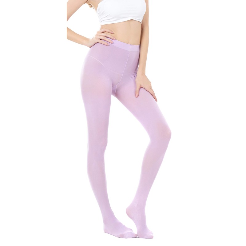 CozyWow Women's 80 Denier Solid Color Soft Opaque Footed Tights lavender lxl