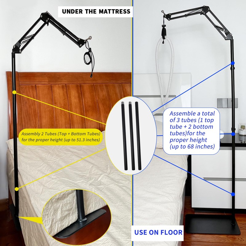 - [ADJUSTABLE HEIGHT AND ANGLE]: The combination of three metal pipes and a 360-degree rotating arm allows for easy adjustment to different heights and angles, ensuring you can fully enjoy and relax during sleep.