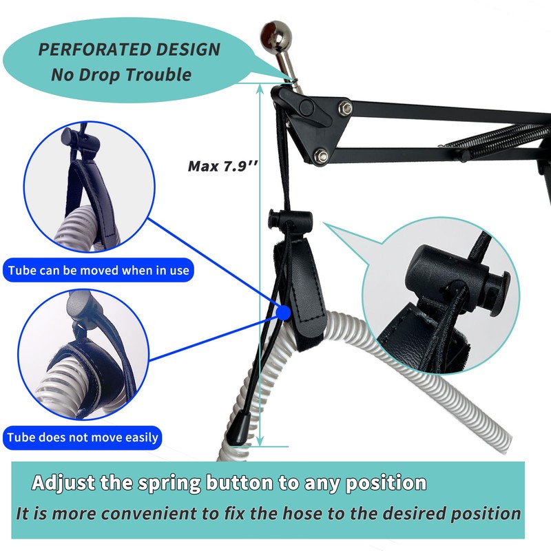 - [STURDY AND STABLE]: Constructed with a steel base and steel pipes, our CPAP Tube Holder provides long-lasting durability compared to plastic stands. It includes a separate weighted bag for enhanced stability and support of your CPAP hose.