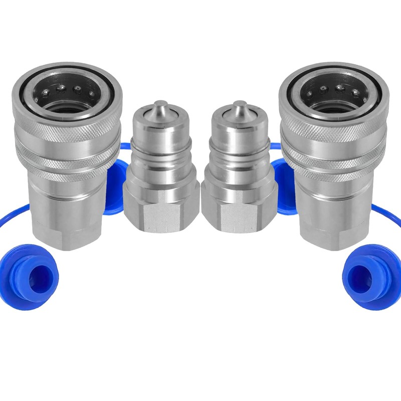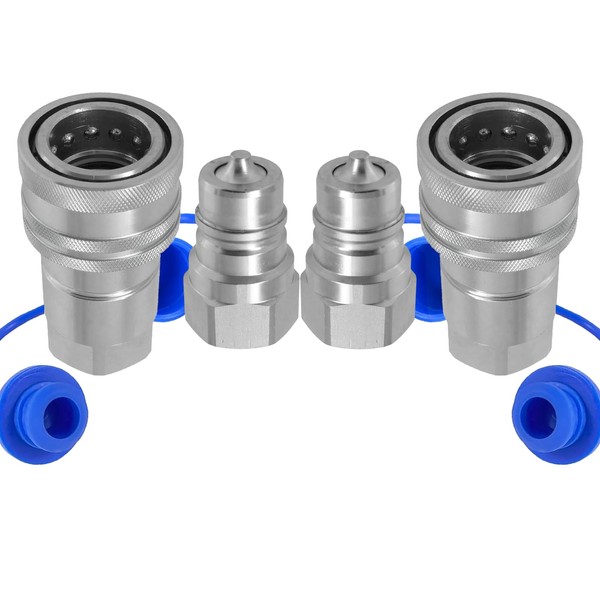 Cplbrb 1/2" Ag ISO 7241-A Hydraulic Quick Connect Couplers with Dust Caps,Quick Disconnect Coupling Poppet Pioneer Style, 1/2" NPT Thread & Body Tractor Hydraulic Coupler-2 Sets