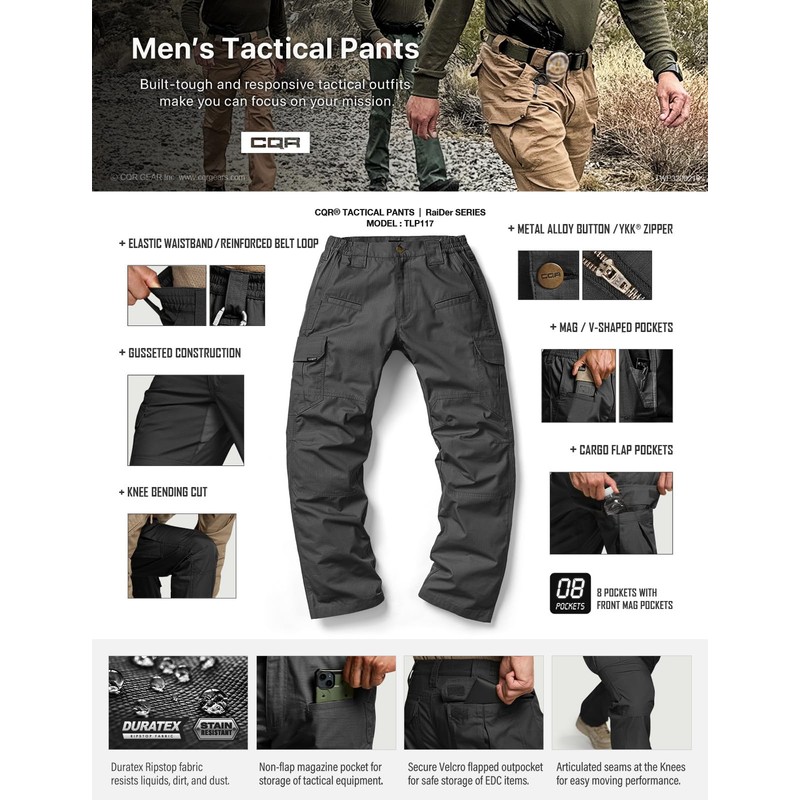 - CQR Men's Tactical PantsSeries designed for law enforcement, military, and outdoor activities.