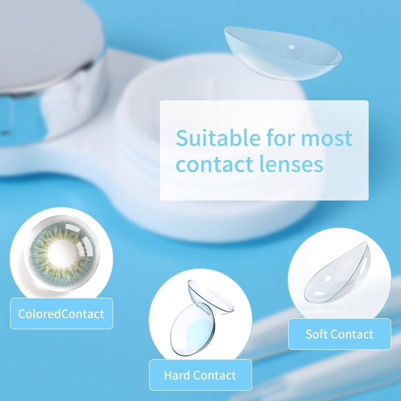 - Contact Lens Washer Cleaner: Keeping contact lenses clean is crucial;before cleaning wash your hands, place the lenses in the basket, pour into contact lens solution, and then rotate the lid to clean your lenses