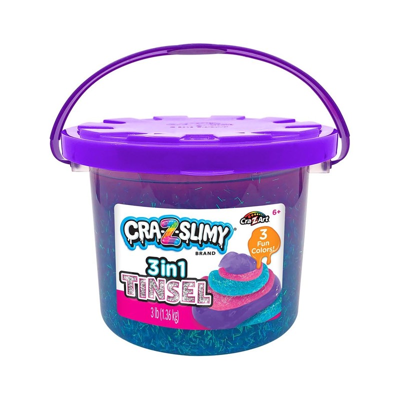 - Cra-Z-Slimy 3lb Tricolor Tinsel Slime Bucket is great for ages 6 and up