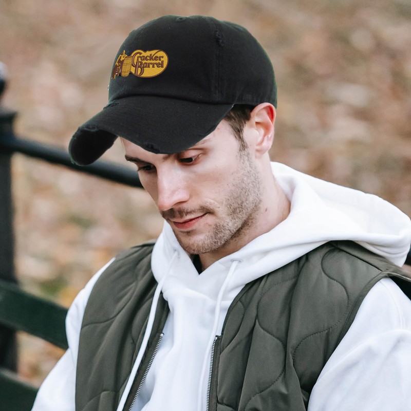 Cracker Barrel Vintage Dad Hat Distressed Cap (Black)