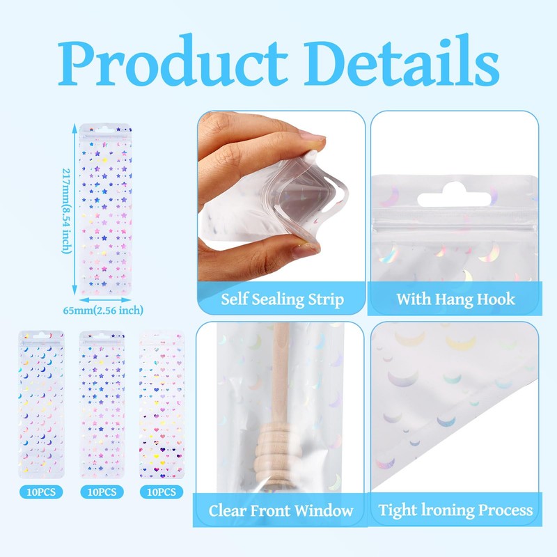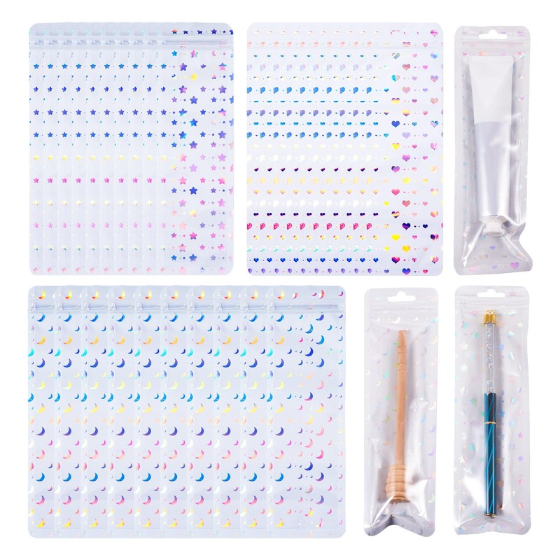- Design This plastic sorting bags in rectangular shape with clear window and moon/star/heart pattern, a self-adhesive strip that seals airtight, effectively protect your items from dust and moisture.