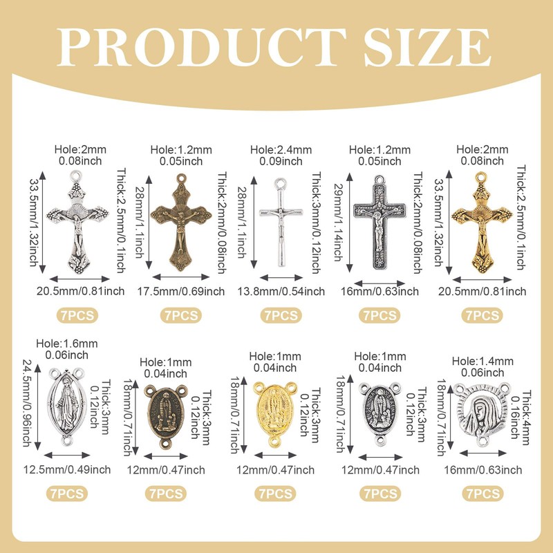 - 【Was Sie erhalten】 70 Stück Anhänger mit Religionsthema insgesamt, einschließlich Anhänger und Kronleuchter-Komponenten-Glieder (Anhänger: 5 Stile, 7 Stück/Stile; Kronleuchter-Komponenten-Links: 5 Stile, 7 Stück/Stile)