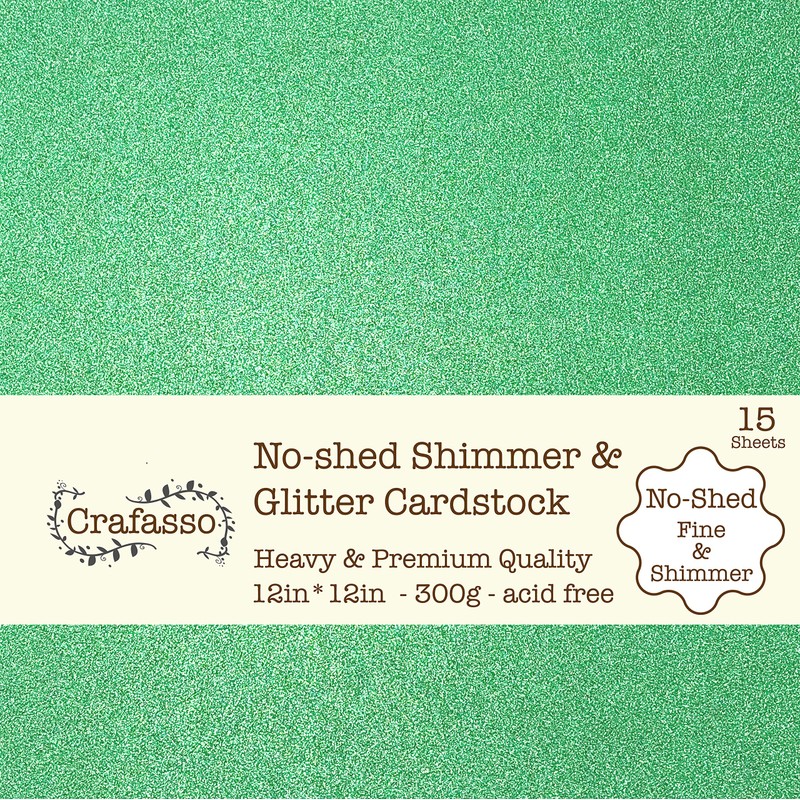 Crafasso No-Shed fine Glitter cardstock, 12" x 12" 300GMS, 15 Sheets, Green