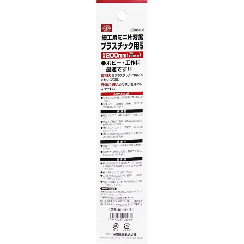 - Compatible replacement blades: SK11 mini single-blade saw replacement blades (SSMB-6, SSMB-7 (triangular blade))