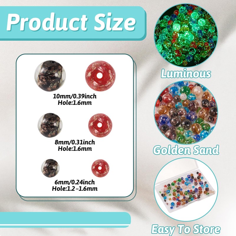 - Feature: These lovely beads are decorated with gold sand, making them elegant and will be the highlight of your jewelry. And they are luminous, will surprise you in the dark.