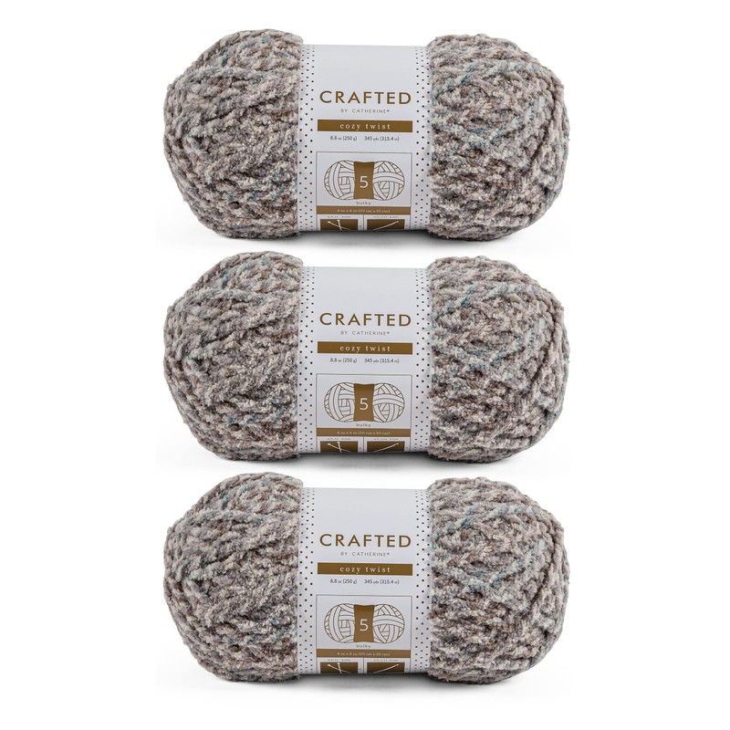 Crafted By Catherine Cozy Twist Yarn - 3 Pack, Grey Multi, Gauge 5 Bulky