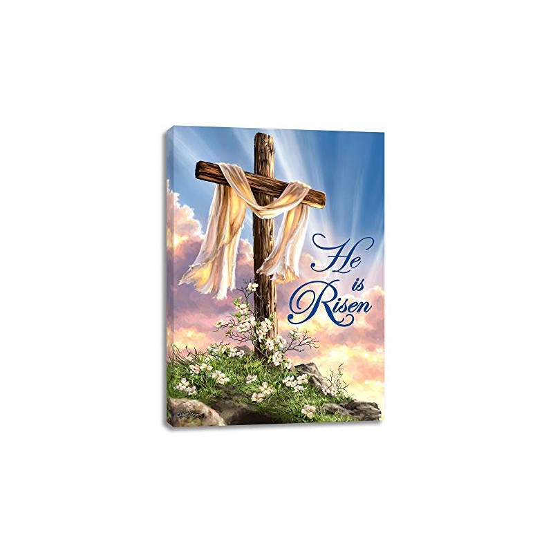 Crafted Creations Blue and Brown 'He is Risen' Rectangular Canvas Wall Art Decor 24" x 18"