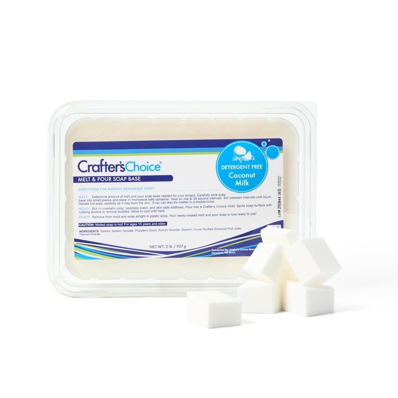 Crafter's Choice Detergent Free Melt and Pour Soap Base for Soap Making and DIY Crafting Projects, SLS/SLES Free, 2LB Block (Coconut Milk)