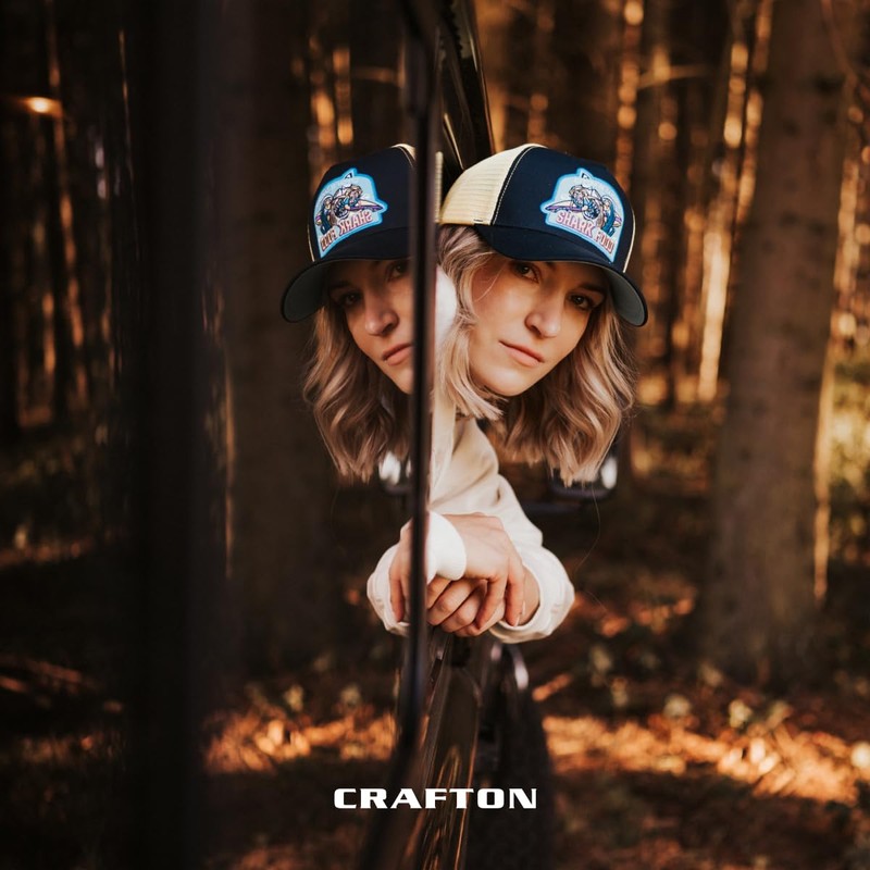 Crafton Mesh Trucker Cap - Baseball Cap - Unisex - Breathable - Individually Adjustable Designs - for Men and Women, Shark Food - Navy/Yellow