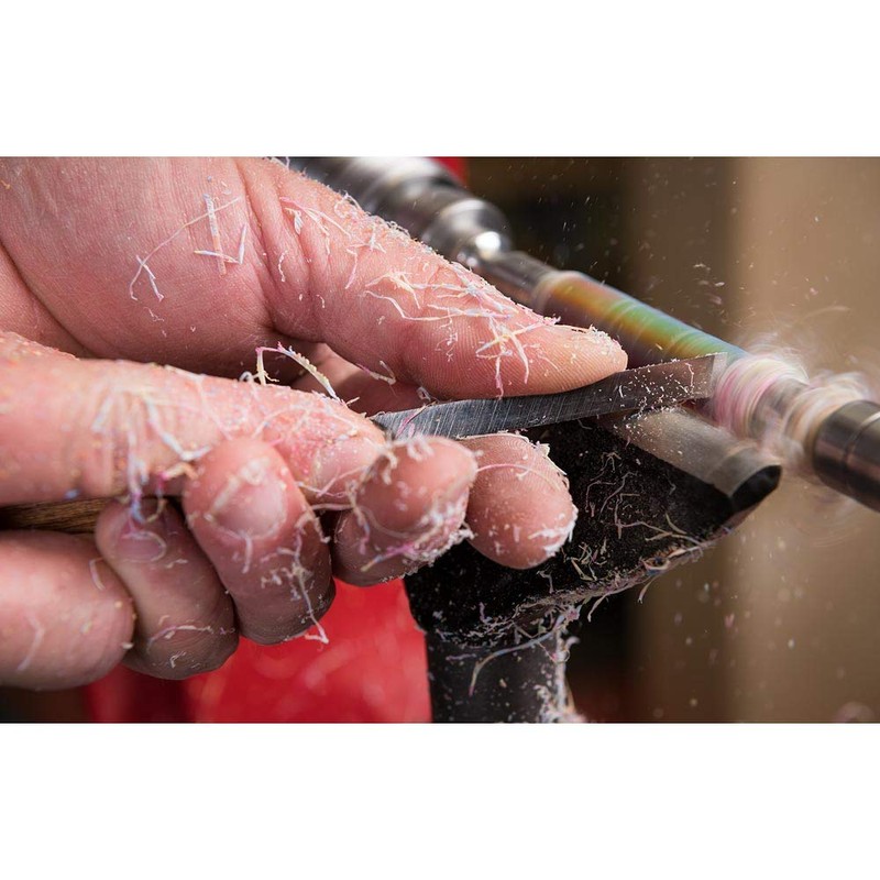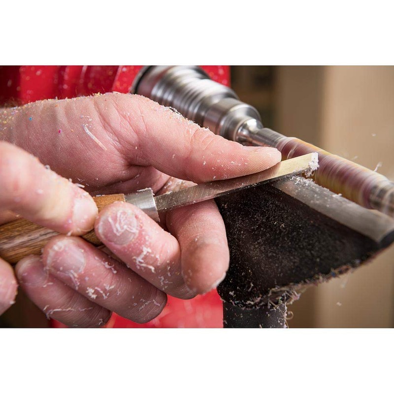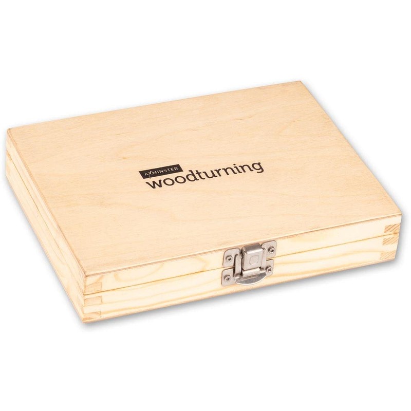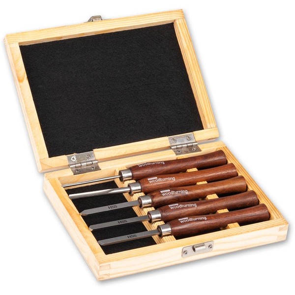 Turning small detailed pieces such as dolls house furniture, lace bobbins, jewellery and similar items requires tools that allow you to create fine detail. These tools sit comfortably in the hand, offering complete control when turning miniature pieces. This set of 5 turning tools features HSS blades with well-shaped hardwood handles. The overall length of each tool is approximately 190mm. The set includes 3.2mm(1/8") and 6.3mm(1/4") gouges, 1.6mm(1/16") parting tool, 6.3mm(1/4") domed scraper and 6.3mm(1/4") skew chisel, all neatly contained in a wooden box.