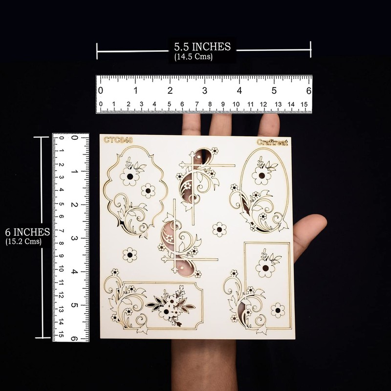 CrafTreat Floral Laser Cut Chipboard Embellishments for Card Making and Scrapbooking - Swirl Frames - Size: 5.5X6 Inches - Flourish Embellishments for Crafting