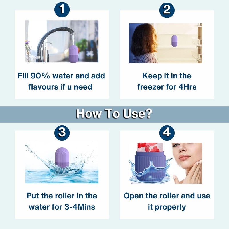 - EASY TO USE – NO MESS, JUST FRESH:- Fill the face ice mold with water or natural ingredients, freeze for 4+ hours, and roll across the skin in 30-second intervals. The ergonomic grip ensures easy handling, and the ice face roller glides smoothly without dripping. Use 1–2 times daily for best results.