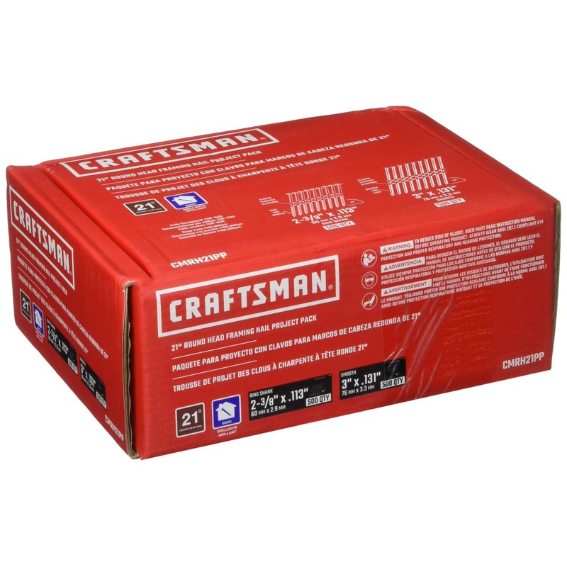 CRAFTSMAN Nails, 21° Round Head Nail Project Pack, 500-Count, 21 Degree, Ring Shank, Smooth Shank (CMRH21PP)