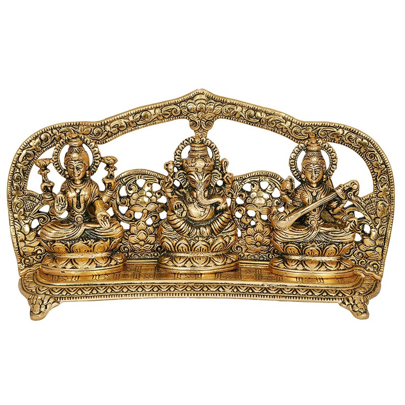 craftvatika Goddess Laxmi Ganesha Saraswati Idol - Lakshmi Ganesh Saraswati Murti - Decorative Item - Showpiece Idols Statue