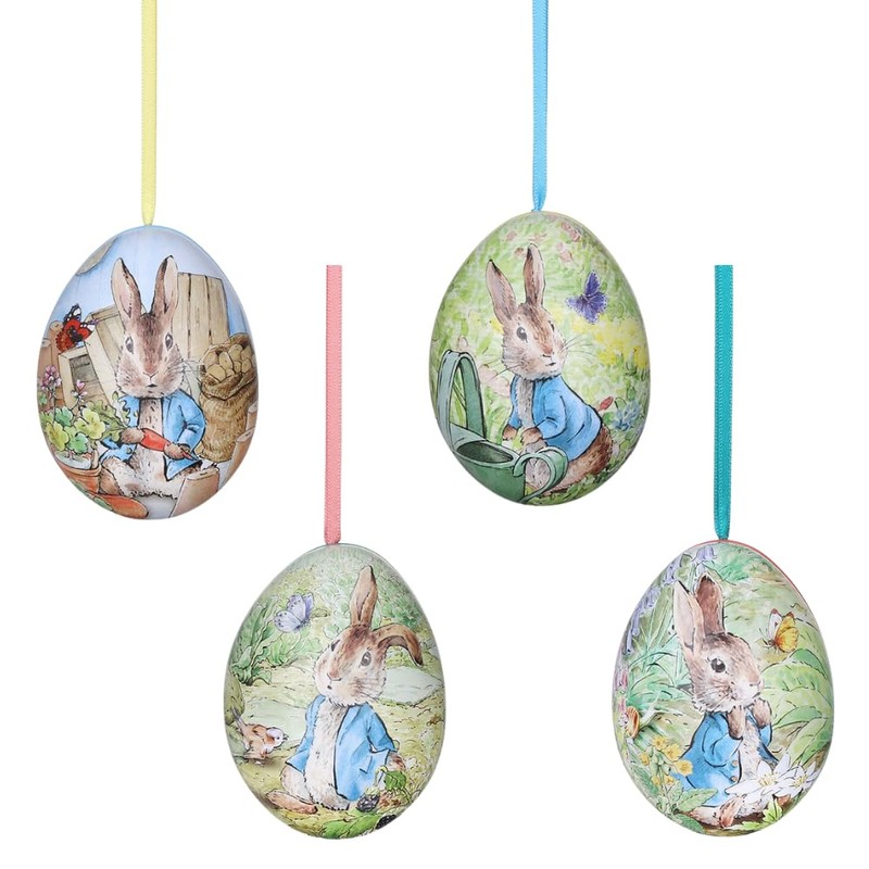 - Calling all Peter Rabbit lovers… These two part hanging tin eggs will be perfect for your Easter tree or to fill with little treats as an Easter gift.