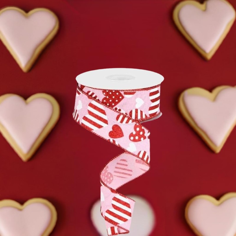 - BEAUTIFUL DESIGN: 10 yards of wired edge ribbon featuring repeating heart print pattern in pink color for festive Valentine's Day decorations, wreaths, floral arrangements, garlands and gifts.