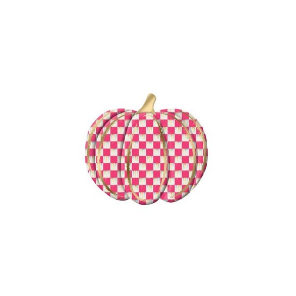 Craig Bachman Metal Pumpkin Wall Decor, 12x11 Inches, Hot Pink and White Checkered Pattern with Gold Accents, Fall Decoration