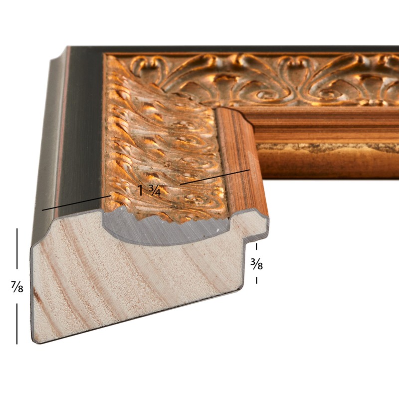 • Gold with gold inlay; black edge and sidewall; distressed ornate finish