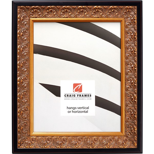 Craig Frames Furio Picture Frame, 18 x 36 Inch, Distressed Gold and Black