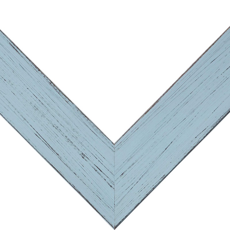 This beautiful rustic picture frame, sure to become an instant classic, is ideal for a wide range of decor styles from rustic to modern. The Jasper picture frame showcases uniquely worn surfaces, with visible wood grain alongside a lightly textured surface . This 1.5" wide moulding, with a rectangular profile, is constructed of poplar with a painted light blue finish. The Jasper Country Sky Blue picture frame pairs well with any print and is a perfect fit for primitive decor.