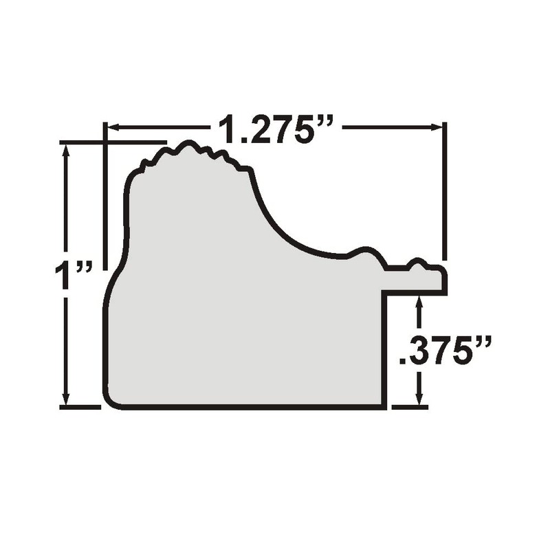 - Frame moulding is 1.25 inches wide; solid wood