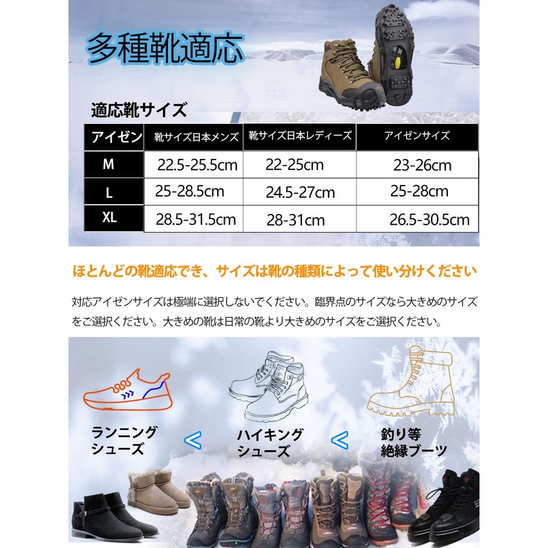 • Compatible with various types of shoes: With good elasticity, it is perfect for sneakers, leather shoes, boots, business shoes, boots, and boots. Perfect for fishing, hunting, walking, jogging, hiking, running, snowshows and more You can enjoy your outdoor activities as much as possible. Please refer to the picture 5 for shoe sizes