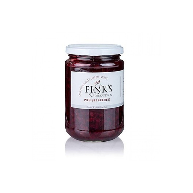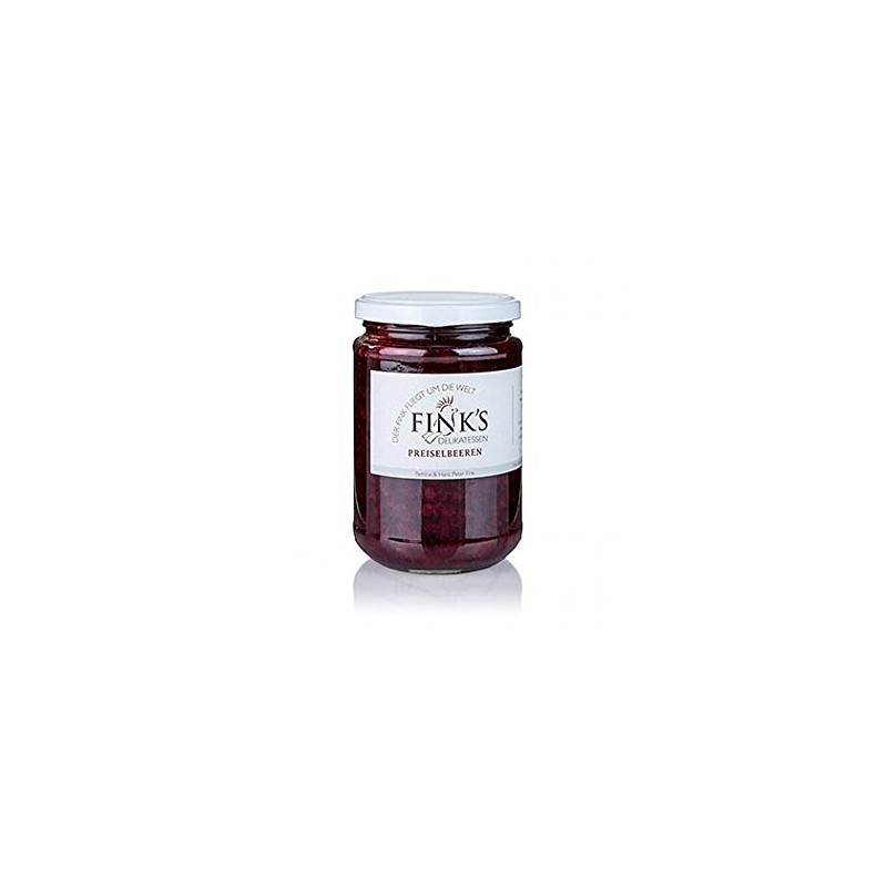 Cranberry roaster with fruit pieces. The powerfully tart composition is the absolute classic for Viennese schnitzel, game dishes and chestnut desserts. Fink's real delicacies are made in Walkersdorf, in the middle of the Styrian fruit country. On mineral-rich soils above volcanic rock, in a sunny climate, the orchards are idyllically nestled between fertile fields and cool forests. Here you can also cultivate valuable old fruit varieties such as Mashansker, crawlers, house pests or vineyard peach in a small area. Ingredients: cranberry spread. Ingredients: 62.2% cranberries, sugar, brandy (37% vol. ), Gelling agent: pectin, lemon peel. After opening, store in the fridge and use quickly. Features: Alcoholic Nutritional values per 100 g/100 ml: calorific value: 400 kcal / 1677 kJ, fat: 0 g, of which saturated fatty acids: 0 g, carbohydrates: 67 g, of which sugar: 31 g, protein: 0 g, salt: 0.01 g